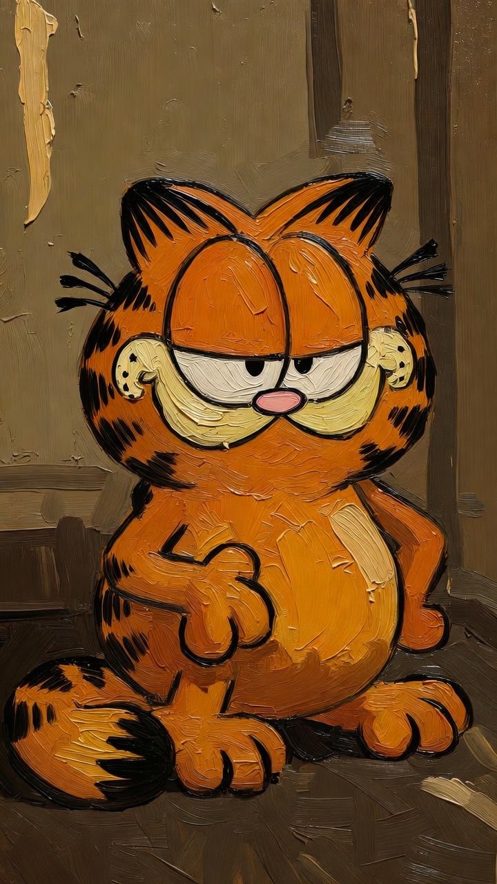 Even cartoons need their beauty sleep. This unique video brings the world's most famous lasagna-loving cat to life in a stunning "living oil painting" style. Watch as he lets out a massive, relatable yawn and stretches his paws, with every thick brushstroke moving fluidly on the screen. It represents the ultimate "Monday Mood" captured in a masterpiece of digital art—perfect for anyone who needs five more minutes in bed.